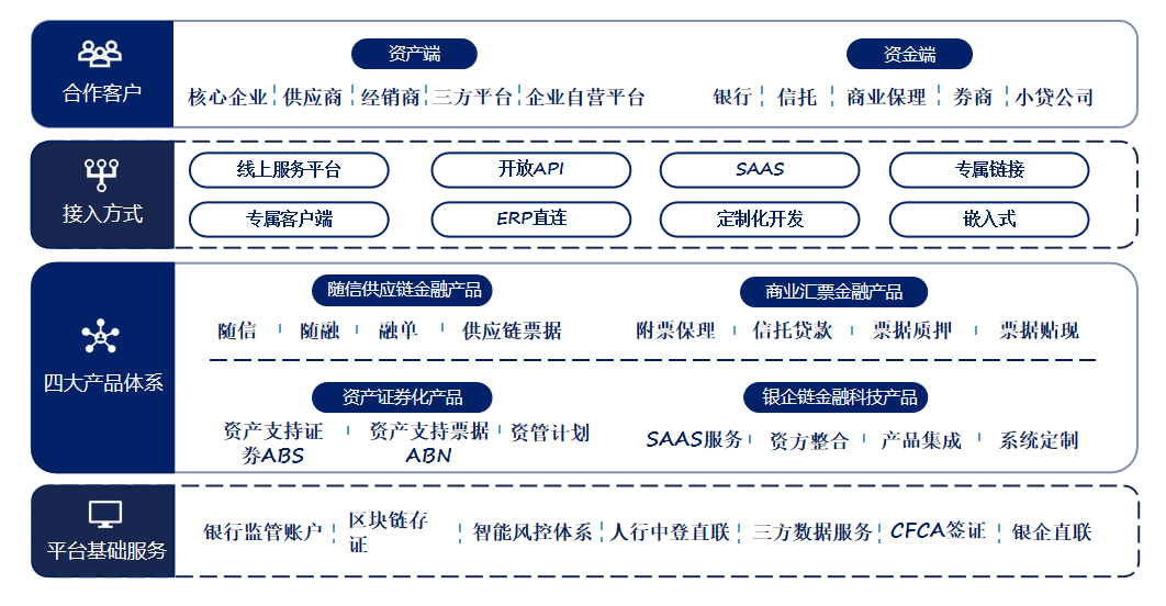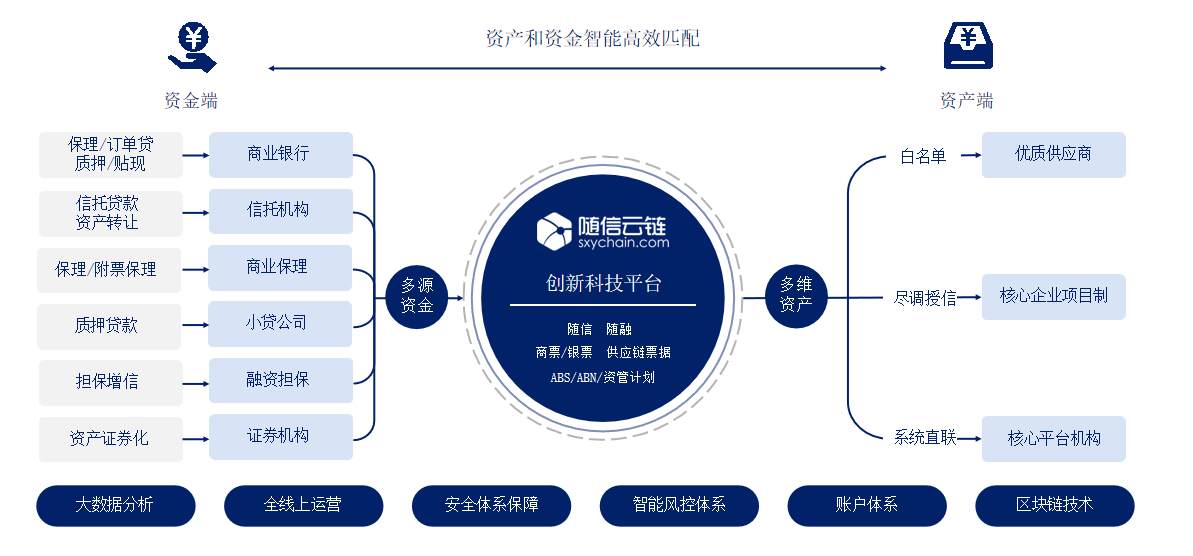 基于深度洞察,隨信云鏈從2018年開始正式拓展供應鏈金融業務,在結行科技集團金融科技、自有資金和鏈接資源的加持下,運用區塊鏈、大數據、云計算、人工智能等金融科技力量構建產業金融生態、創新商務合作模式、建立支付級智能風控體系、提供全生命周期管家式服務, 持續突破發展瓶頸,打通產業鏈信用壁壘,實現核心企業商業信用賦能。