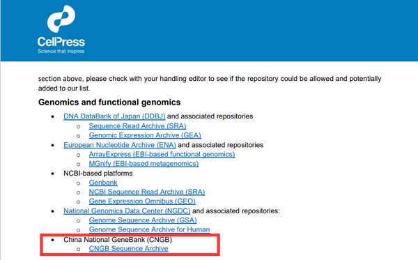 近日,國家基因庫序列歸檔系統(CNSA)被Cell Press(細胞出版社)推薦為基因組學和功能基因組學數據存儲庫。