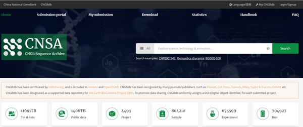 CNGBdb的存儲功能由國家基因庫序列歸檔系統(CNSA)負責。CNSA是一個支撐全球組學研究成果匯交和管理的系統,致力于多組學數據(基因組、轉錄組、代謝組、單細胞和空間轉錄組等)的開放和共享,為全球科研人員提供更加安全、穩定、可靠、便捷的數據歸檔服務,促進多組學數據的再利用,推動全球生命科學的發展。