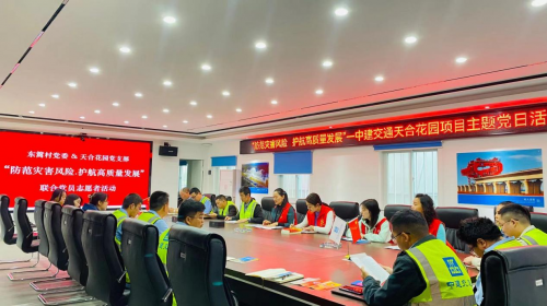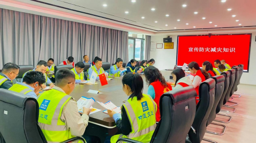 今年5月12日是全國第15個全國防災減災日,為進行各類災害風險的防范宣傳,科普防災減災知識,提高項目應急避災避險的意識和能力。5月12日上午9:30,在天合花園項目部開展“防范災害風險 護航高質量發展”聯合黨員志愿者活動。項目班子、黨員、積極分子及東籬村黨員志愿者、網格員、安全協管員等20余人參加此次活動。