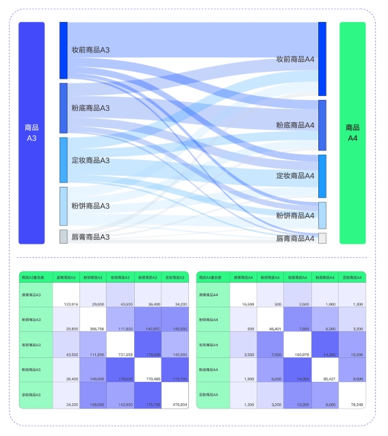 一方面,品牌可以通過比對不同商品SPU的5A人群重疊和流轉(zhuǎn)情況,找到商品多類目興趣人群、跨類目潛力購買人群和品牌忠誠人群等,擴(kuò)寬人貨度量新視野;