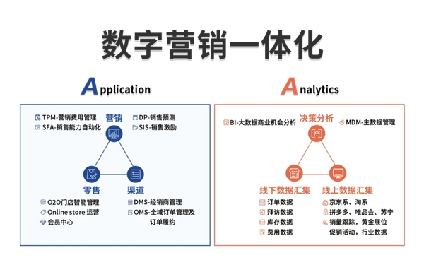 賽博威雙A模型,為企業搭建并打通相關系統(Application),通過數據洞察分析(Analytics)實現企業 私域數據 資產沉淀及數據智能分析,推動企業數據商業化應用。 雙A合璧,助力企業打破信息孤島,建立企業私域數據體系。在提升不同職能和部門之間的協同能力、建立創新及技術驅動的業務模式的同時,通過智能數據分析,激發企業營銷鏈路數據價值,輔助戰略決策,推動整個價值鏈智慧創造,助力實現業務可持續增長,為未來接入人工智能做好準備。