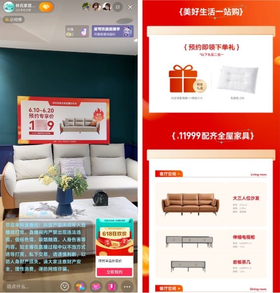 為此,林氏家居攜手全國線下經銷商和800多家門店共同參與"618美好生活季"主題活動,期間統一商品活動價格,發揮規模效應。通過線上的引流造勢,林氏家居將用戶引導至線下經銷商的實體店,增加線下店鋪的客流量 ,同時進行更深入的產品展示和銷售推廣,進一步提高品牌的認知度和銷售機會。
