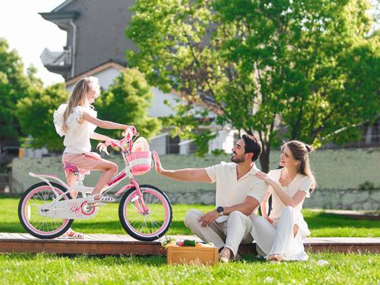 優雅從來不止于表面,順滑軸承令騎行如沐春風,每一次蹬踏都能絲滑起飛,騎行更省力。美麗經得起磨礪,不懼地形,我也可以!2.4英寸加寬橡膠輪胎,防滑減震,抓地力強,每一次顛簸都能穩穩優雅的駛過~刻有心形浮雕輪胎,風都是甜的~專利小握距剎把,優雅不慌張一抓即停,為女孩兒提供了非常符合小手的握把設計,在確保了易于操控的同時還帶來了舒適度和安全性。PU發泡座墊,以及符合人體工學的設計,提供舒適的接觸面和很好的支撐,并輔助平穩踩踏,