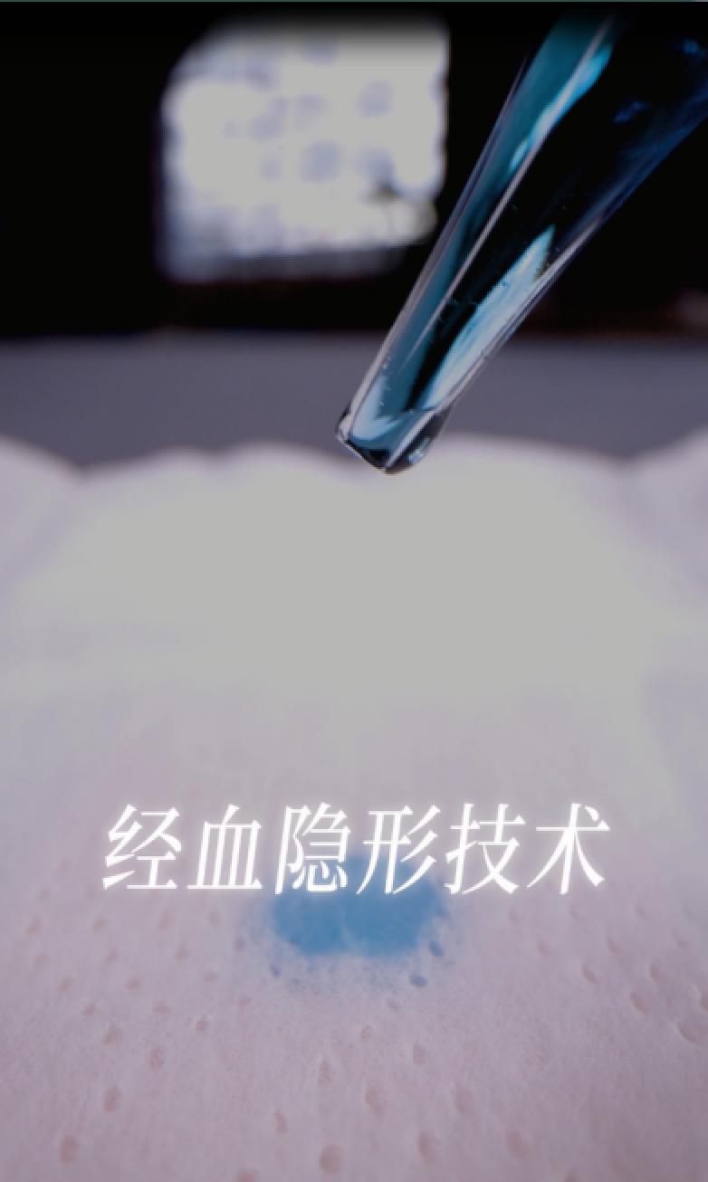 因此,從女性體感出發(fā),棉密碼無痕系列的面層、芯體全面創(chuàng)新。其中一大亮點(diǎn)在經(jīng)血隱形科技上,在面層與芯體材質(zhì)的共同作用下,能夠在經(jīng)血接觸后快速下滲,并在底部擴(kuò)散,視覺看起來表面只有一點(diǎn)點(diǎn),減少表層接觸肌膚的粘膩度,從而真正實(shí)現(xiàn)“視覺無感”。
