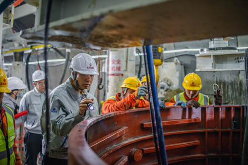 項目團隊正在有條不紊的進行管片安裝作業