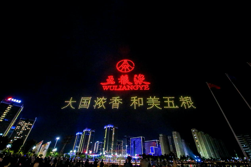 2023世界品牌莫干山大會(huì)舉行期間,五糧液品牌LOGO組成的無(wú)人機(jī)燈光秀讓與會(huì)嘉賓印象深刻