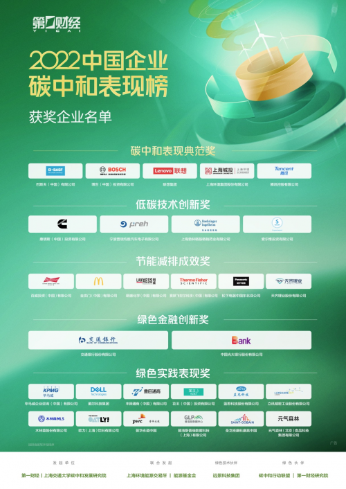 2023年4月22日下午,首屆中國企業碳中和表現榜頒獎盛典在上海隆重舉行,29家在碳中和進程中表現出色的企業,分獲5大獎項。