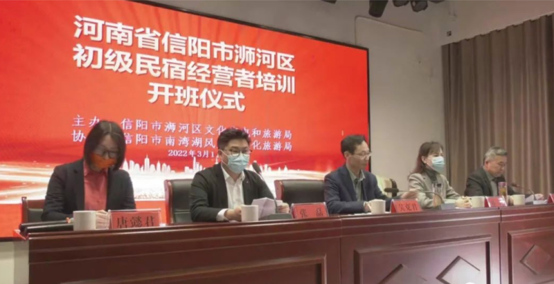 2022年3月1日,由浉河區文旅局、南灣湖文旅局與斯維登集團住標學堂合作的浉河區初級民宿經營者培訓班在信陽書畫院開班授課,來自浉河區和南灣湖風景管理區的民宿經營業主、民宿管家等120人參加培訓。