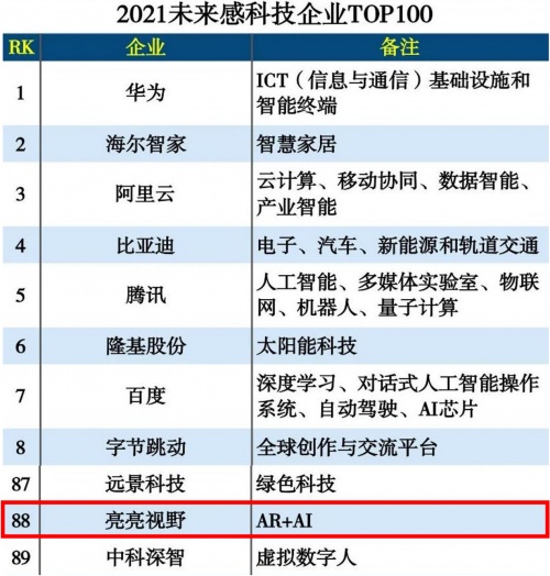 近日,互聯(lián)網(wǎng)周刊發(fā)布“2021未來感科技企業(yè)TOP100”榜單。榜單聚焦前沿科學(xué)技術(shù),并且能夠把科技成果轉(zhuǎn)化為可觸達的產(chǎn)品。憑借七年高質(zhì)量穩(wěn)健發(fā)展和商業(yè)模式創(chuàng)新,作為行業(yè)獨角獸的亮亮視野在AR+AI領(lǐng)域的深耕顯而易見,與華為、阿里云、比亞迪、騰訊、百度等中國一線科技公司一道入選榜單。