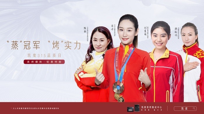 要買專業蒸烤,就選凱度電器。此次凱度315品質日,北京奧運射擊冠軍陳穎、倫敦奧運擊劍冠軍駱曉娟、里約奧運跳水冠軍劉蕙瑕、藝術體操世界冠軍朱丹4位體壇冠軍聯合推薦凱度電器,正面詮釋了凱度的冠軍精神和冠軍品質。