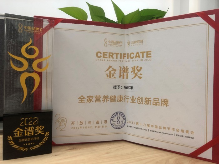 8月8日至9日,2022第十六屆中國品牌節年會在長沙盛大召開,“2022中國品牌金譜獎”評選隨之新鮮出爐,暢億家榮獲“金譜獎·全家營養健康行業創新品牌”,成為今年獨一上榜“金譜獎”的大健康創新品牌。金譜獎通過品牌行業地位、品牌購買力、品牌活躍度、消費者影響力、品牌社會責任感等多項指數的綜合評選,評選行業年度表現最佳的品牌,每年評選1次。每行業入圍30強,最后決出品牌中國金譜獎榮譽。