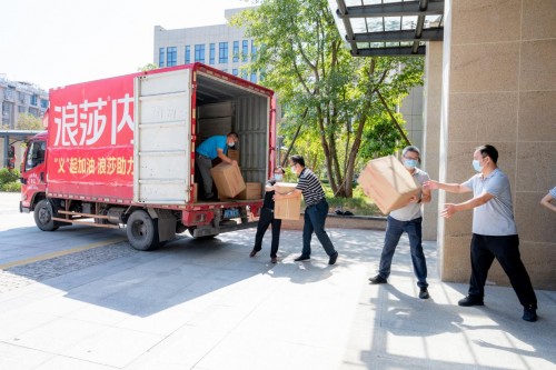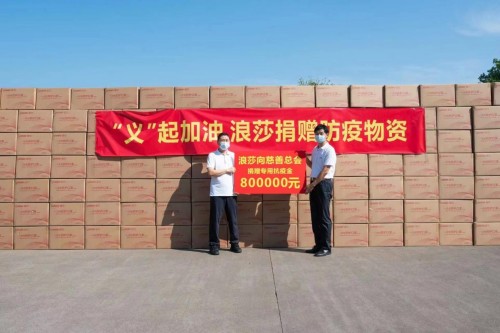 8月18日,浪莎集團董事長、義烏民建會員翁榮金代表企業浪莎集團向義烏市慈善總會和義烏市教育局捐贈100萬元,以表達對政府的感恩之情和對社會的關愛之情。捐贈包括了80萬元現金,及30萬個口罩、防曬衣、冰袖和襪子等共價值20萬元的防疫物資,教育局、工商聯、市場委、慈善總會和義烏民建等單位的領導出席本次捐贈儀式活動。