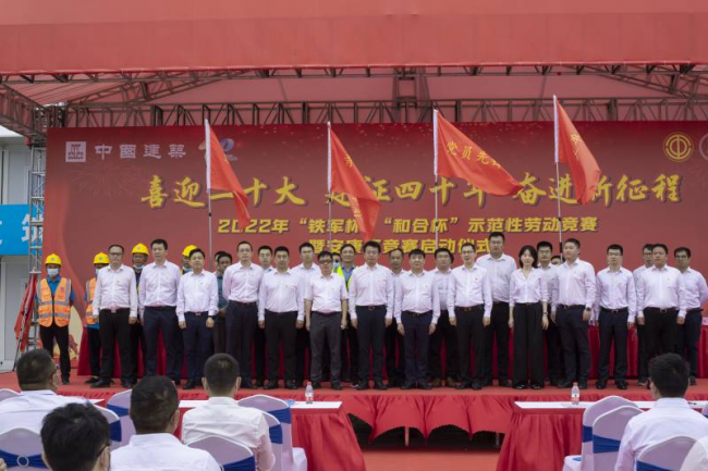 為發揮勞動競賽激勵指導作用,在中建·觀瀾雅境項目、中建·御璟峯項目舉行“喜迎二十大 建證四十年 奮進新征程”2022年“鐵軍杯”“和合杯”示范性勞動競賽暨“安康杯”競賽啟動儀式,通過邀請蘇州工會系統領導,聯動合作方中建國際、總包單位營造重大項目建設大干快上、奮發進取的濃厚氛圍,助力項目關鍵節點目標早日達成,為項目售樓處如期開放、順利開盤奠定了良好基礎。