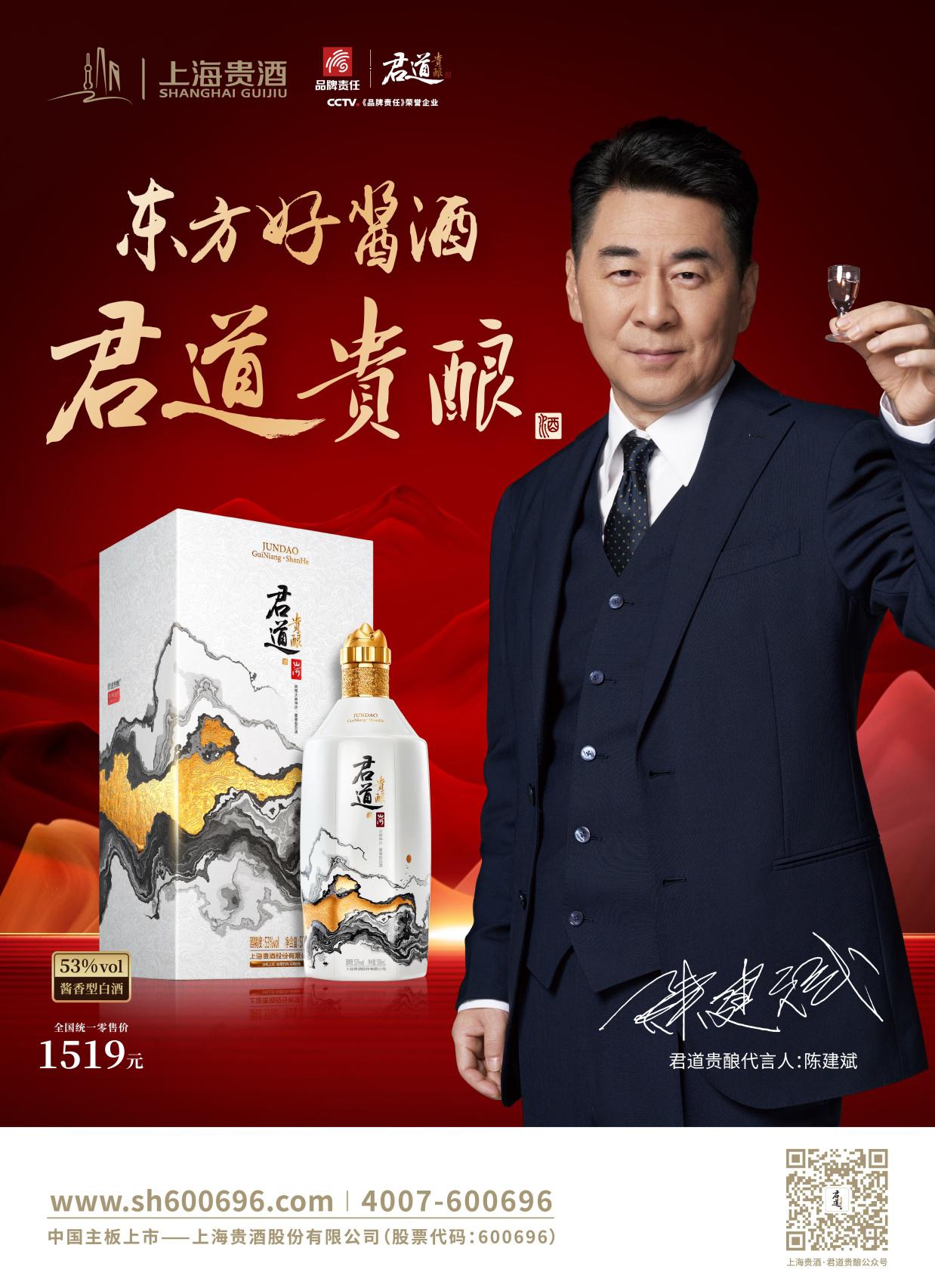 上海貴酒·君道貴釀在2021-2022年與CCTV《品牌責任》的合作過程中,切實夯實了良心企業、優質企業、放心企業的品牌形象。2022-2023年度上海貴酒·君道貴釀將與CCTV《品牌責任》再度攜手,本次品牌代言人陳建斌先生合作的人文藝術大片也即將登陸央視CCTV 1套、CCTV 2套等,繼續履行榮譽企業的使命,持續加固品牌價值與品牌信任感,一步一個腳印地去履行以創新思維傳承東方人文,榮登國際舞臺的中國醬酒品牌!