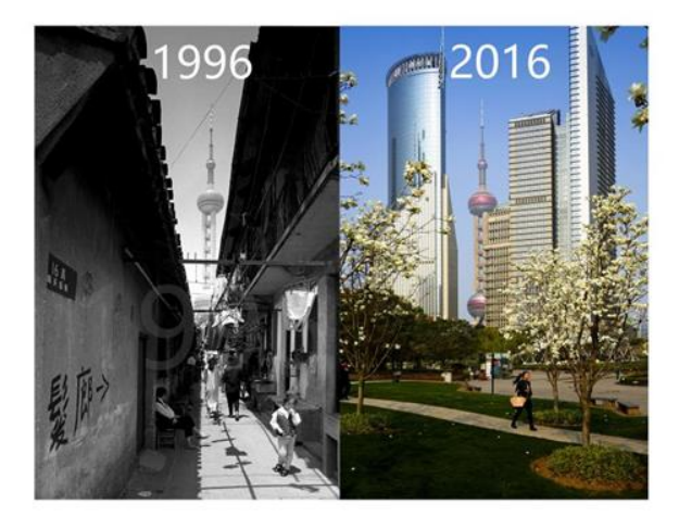 近30年前,攝影師姚建良在浦東陸家嘴棚戶區拆遷前夕,曾拍下這樣一張照片: