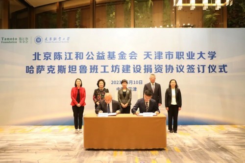 5月10日,北京陳江和公益基金會支持天津市職業大學魯班工坊簽約儀式在天津舉行。該捐贈主要用于資助即將在中亞國家哈薩克斯坦開展的、“一帶一路”相關項目——魯班工坊的建設。