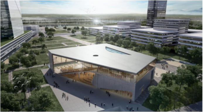 投資2億元的高新區圖書館,如同一個一個迎向東方的巨型階梯,是河源首個異形清水混凝土結構工程,勾勒出極富想象力的空間。