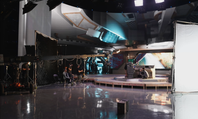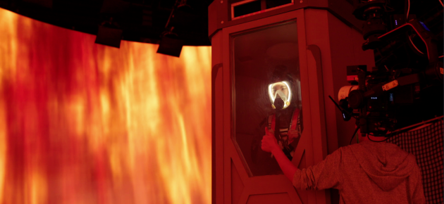 它創(chuàng)造了一個(gè)沉浸式的拍攝場(chǎng)景,攝影師可以像拍攝真實(shí)的物體一樣取景,演員能與虛擬可見場(chǎng)景直接互動(dòng),與傳統(tǒng)的空曠綠幕舞臺(tái)相比對(duì)演員更友好,能使其快速入戲,演繹角色。