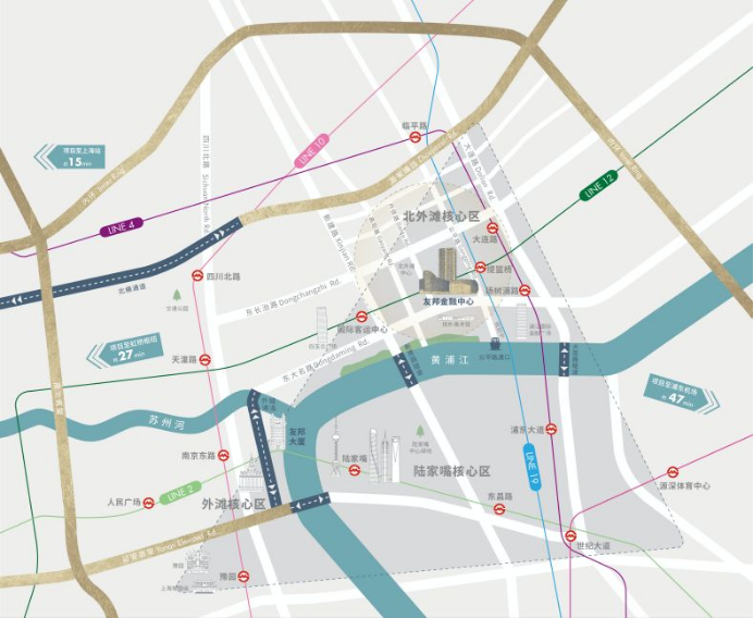 l輕松抵達重要樞紐:5分鐘可抵外灘、8分鐘可抵陸家嘴、15分鐘可抵上海站、27分鐘可抵虹橋樞紐;