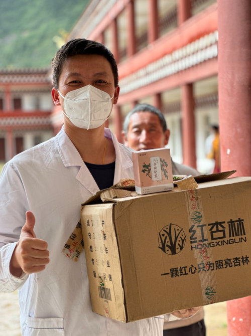 紅杏林在捐贈物資、支援義診的同時,紅杏林中醫技術研究中心總監安瑞隨同團隊前往藏區,協助義診現場的服務有序開展同時,依托品牌積累的用戶資源,以直播形式呈現義診真實場景,讓更多人看見藏區的實地情況,并發起號召,希望更多有能力、有資源的同道人也能夠積極參與到公益中來。