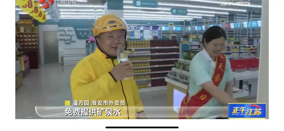 “最近天氣太熱了,廣濟醫藥給我們準備了水跟藿香正氣液,內心非常感激。”一位前來領水的外賣員由衷地感謝道。